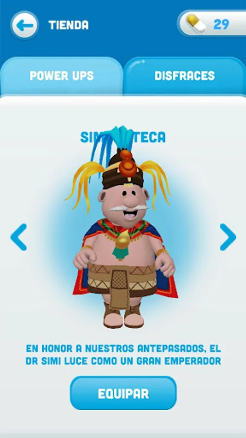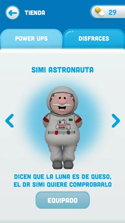 The goal, as always in this genre, will try to get as far as possible, exceeding the objectives set at each level whereas collect as many simivitaminas during our tour. With these simivitaminas, you can go to the game store to exchange them for different costumes and special powers that will help us on our way.