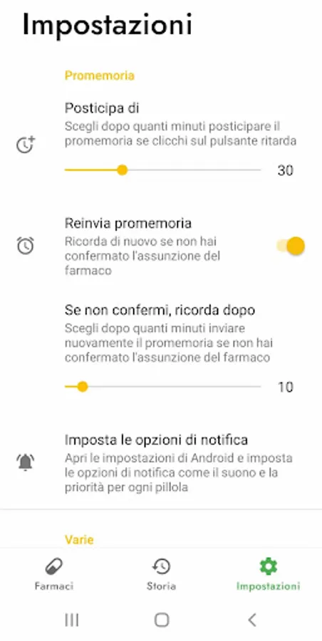 - you can set after how many minutes to postpone the alarm, or after how many minutes to make the alarm sound again in case of no confirmation.