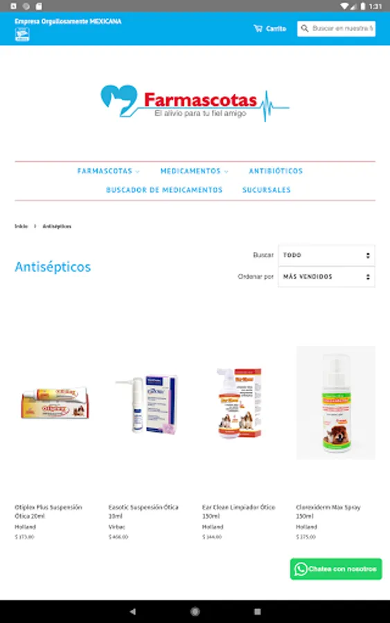 100% Mexican company, the first pharmacy in Mexico specialized in pets, wholesale and retail sales with special prices for MVZ, we have home delivery throughout the Mexican Republic and physical branches in Mexico City.