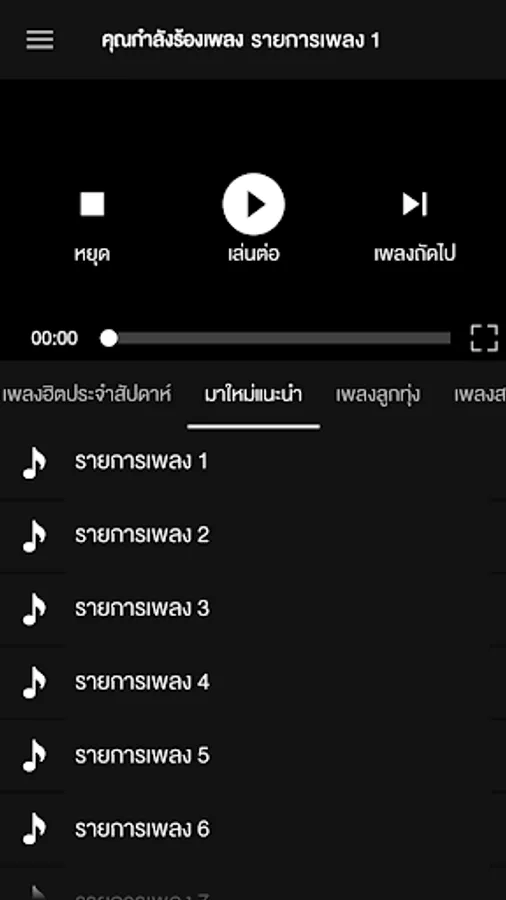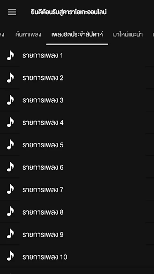 - Thai song karaoke Various genres of music such as Lukthung, Mo Lam, String, Suntaraporn, Dance, Hip-Hop for Life and International.