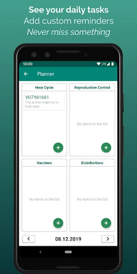 The planner section helps you not forget your daily tasks within your farm. You will see in the board animals that might be in heat cycle, should give birth in e.g. 45 days from now, and so on.
