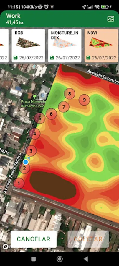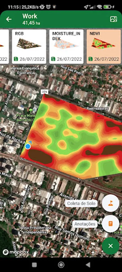 Images of vegetation indexes, composition or drone, of registered crops, made available for viewing and walking.