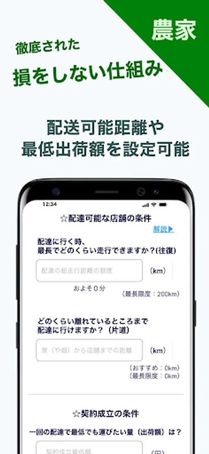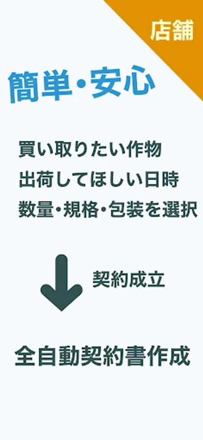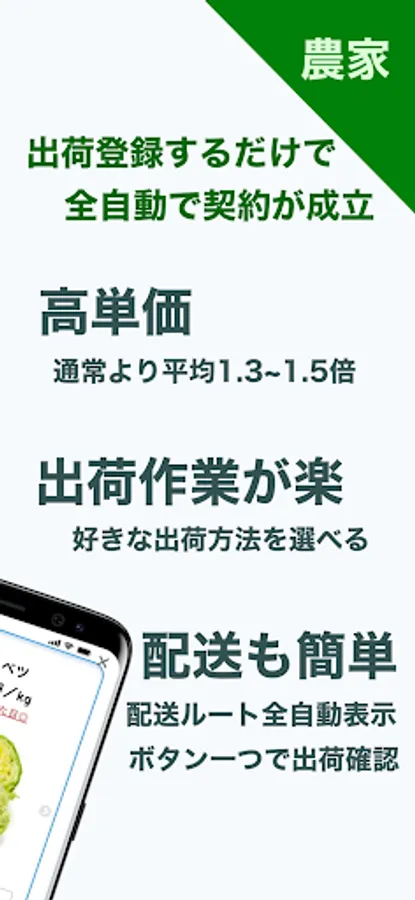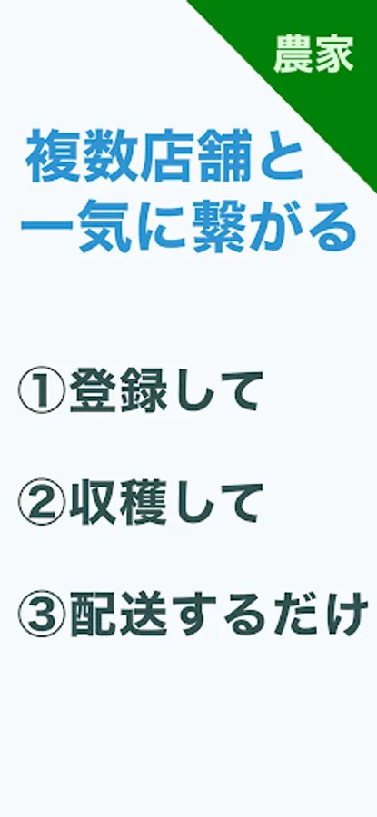 The app "Agriculture Match" is a matching service that automatically connects farmers and stores. Using the machine's automatic distance calculation technology, we have realized a mechanism that allows direct contracts with multiple stores at the same time. This is the first attempt in Japan. This app becomes easier to use when many people register.