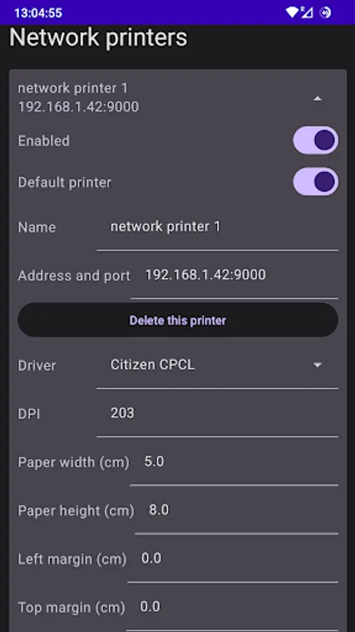 It supports ESC/POS printers like the Netum G5 or MTP-II. It also supports Citizen printers using the CPCL protocol.