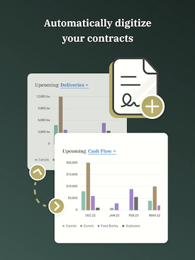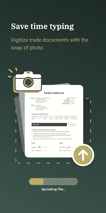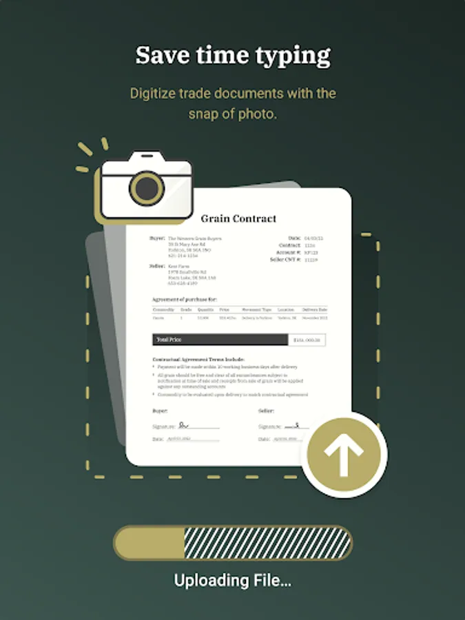 Once your inventory has been added (either old or new crop), start digitizing your documents with the help of Combyne. Simply upload a PDF, screenshot, or snap a picture straight from your phone and let Combyne do the rest. The app scans and parses your document (contract, load ticket, or settlement) to create a digital record to start automating your workflow.