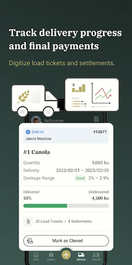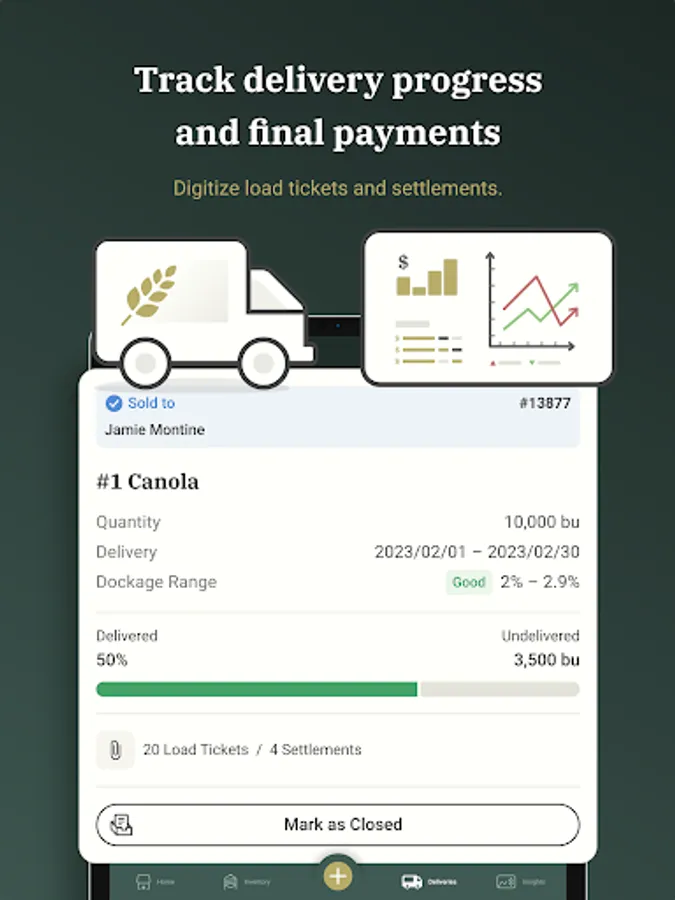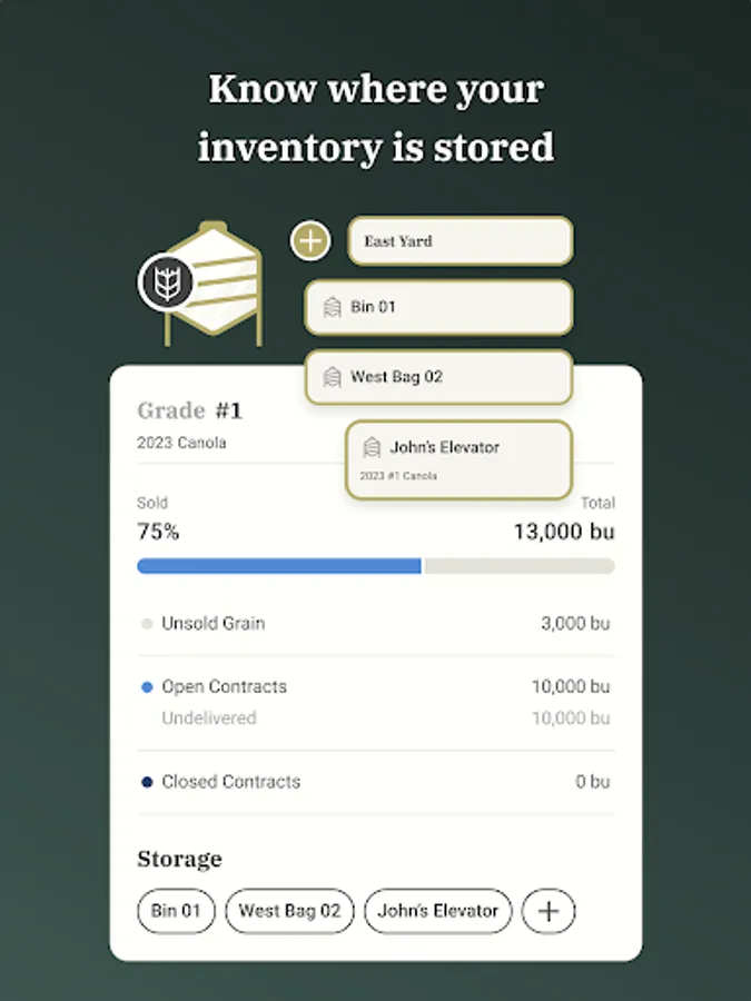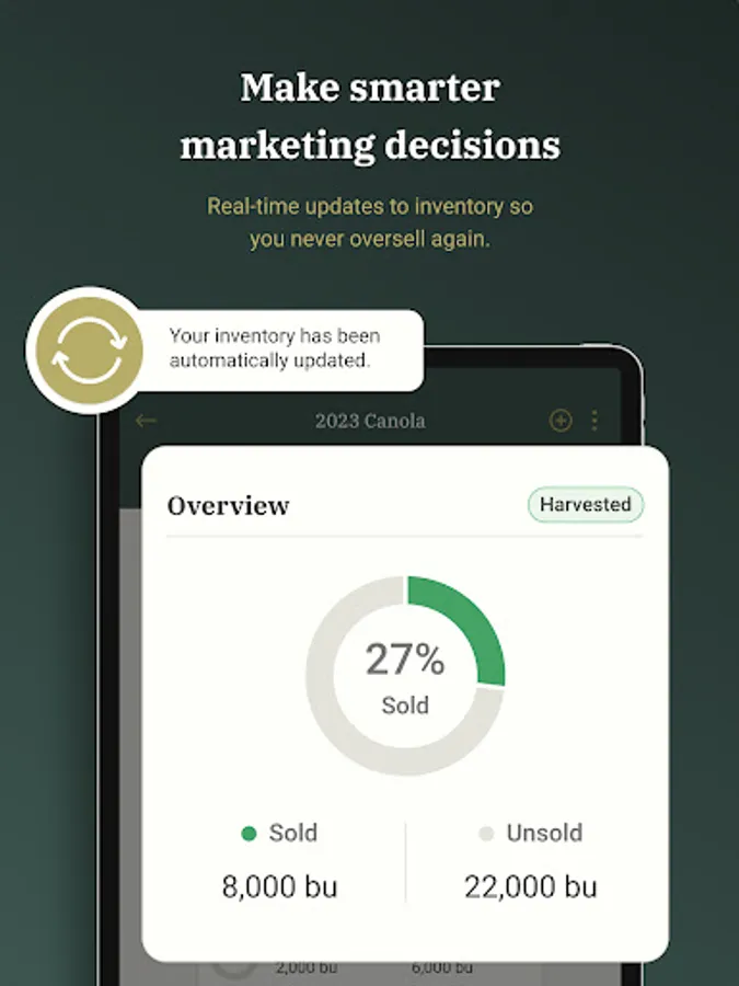 Your inventory will be automatically reconciled to show how much unsold crop you still have available, your projected cash flow, and upcoming deliveries you need to plan for.
