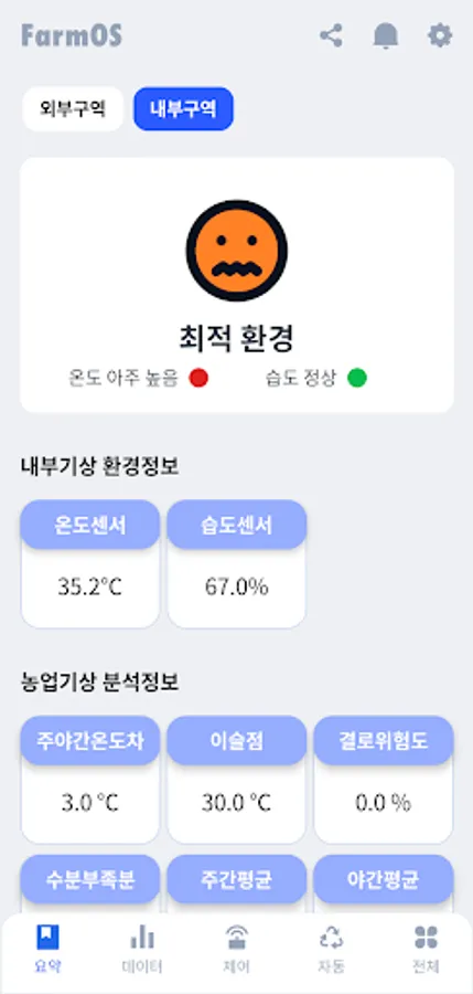 - You can check the farm external environment information provided by the Korea Meteorological Administration in real time.