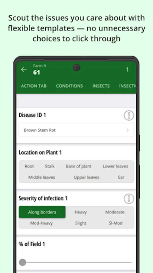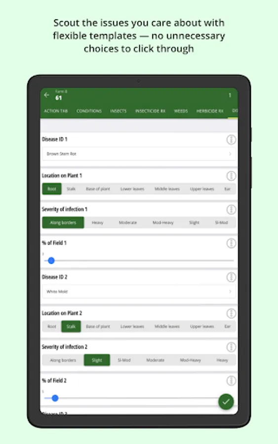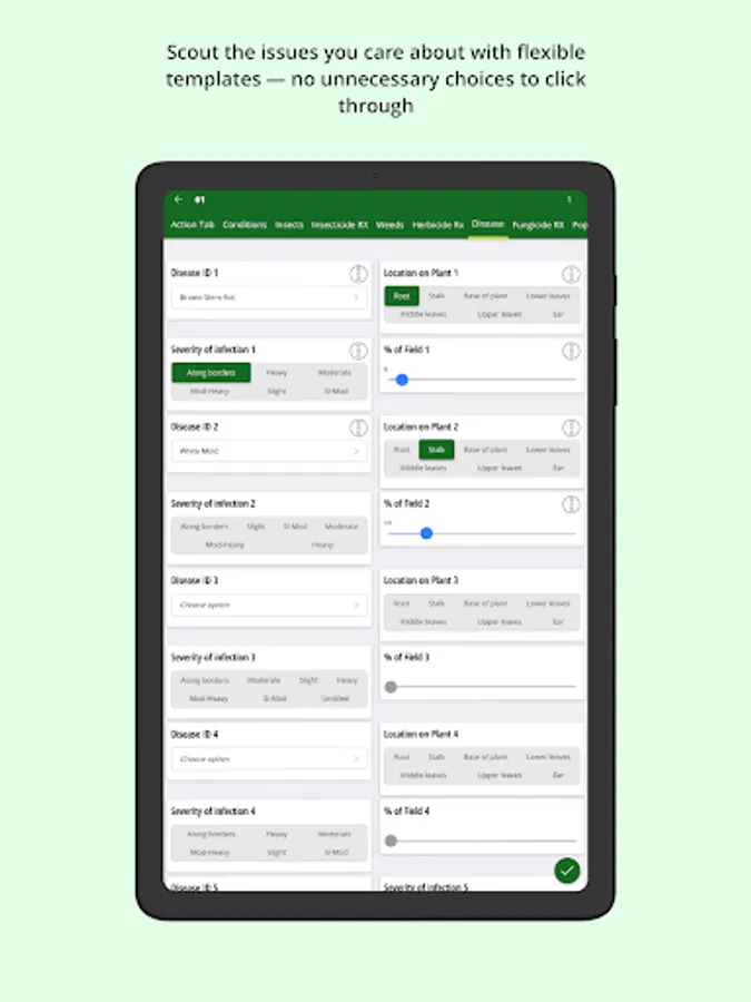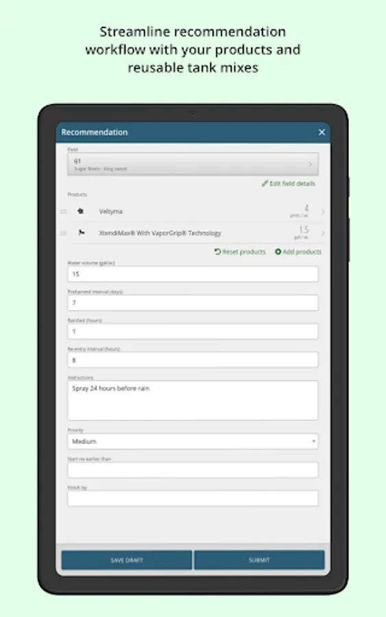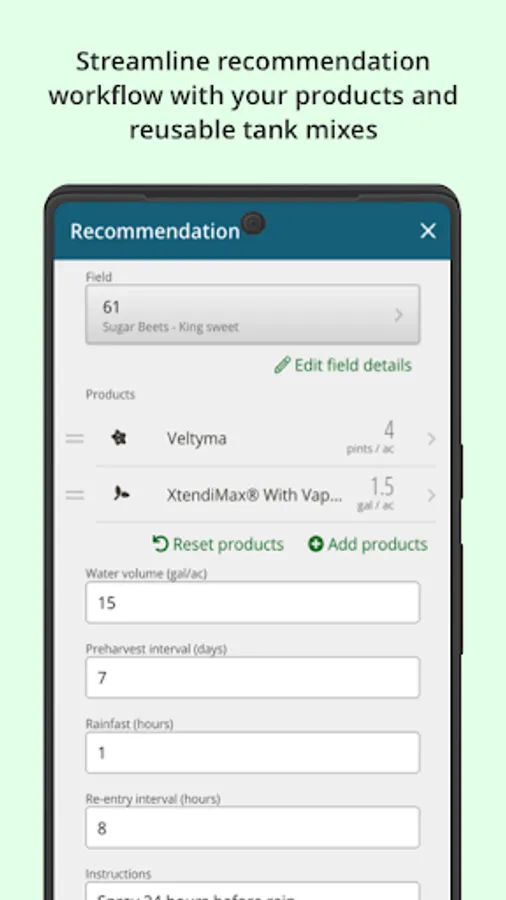 - Easily capture crop treatment recommendations and chemical prescriptions