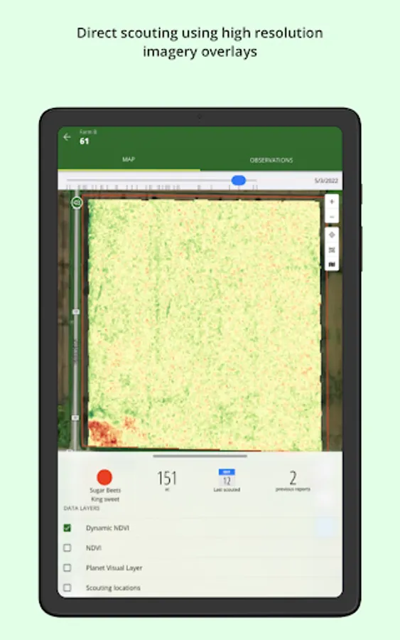 Imported imagery can be viewed in the FarmQA Scouting mobile app whether you are online or offline. Imagery can include NDVI images, soil maps, last season’s yield, and so much more. Use imagery to direct your scouting to the problem spots in each field.