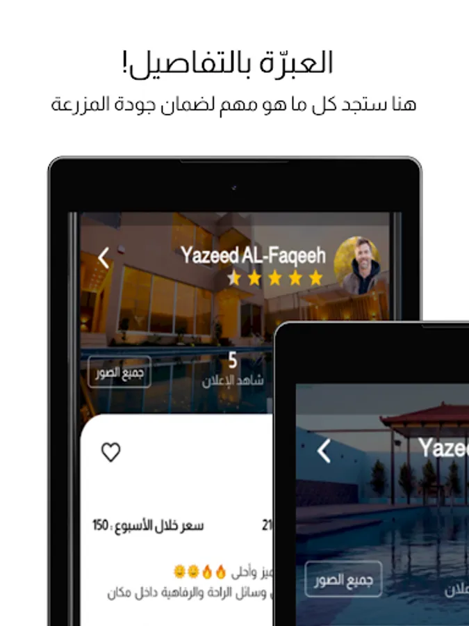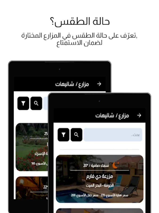 Anyone can view any of the chalets or farms for rent, with some details, price and available dates, Farms application makes things clear and smooth.