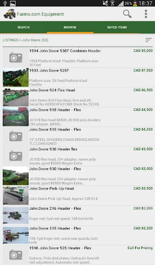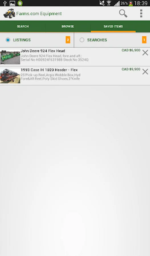 Search for used farm equipment and agricultural machinery with ease at Farms.com. Our mobile android app makes finding used farming equipment simple. Search by equipment category, manufacturer, brand name, price range, location, and more. With thousands of pieces of farm equipment for sale from leading farm equipment and machinery dealers, Farms.com will connect you with the used farming equipment you’re looking for, from a dealer you can trust.