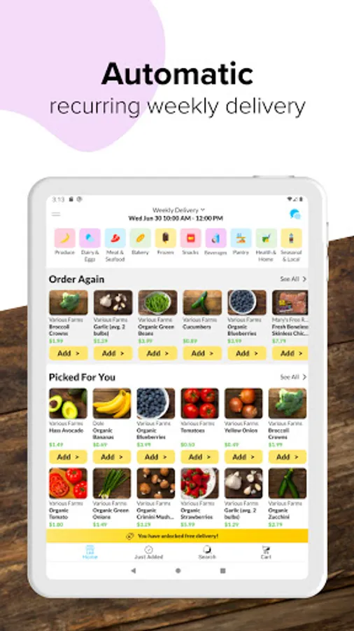 Put your groceries on autopilot and get a 5% discount each time you buy the same product again. Customers save hundreds of dollars per year.