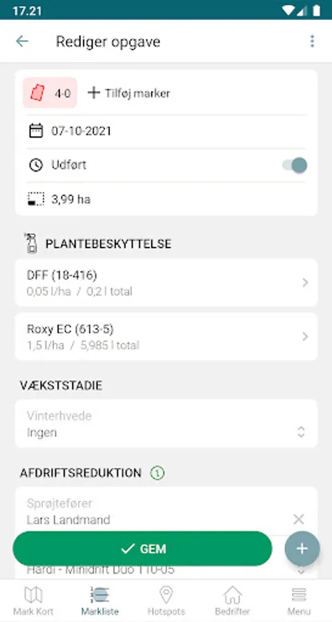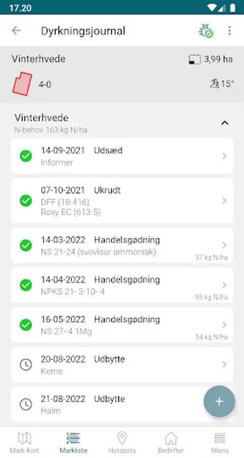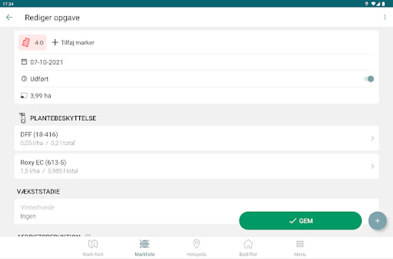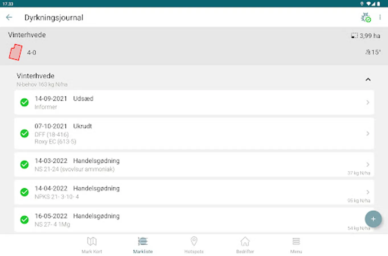 If you purchase a subscription for FarmTracking Basic, you can also make registrations of your fieldoperations, spraying, fertilization, yields etc. These will be stored in Mark Online.