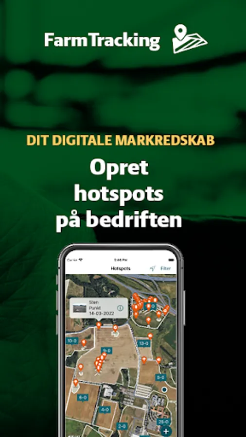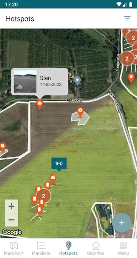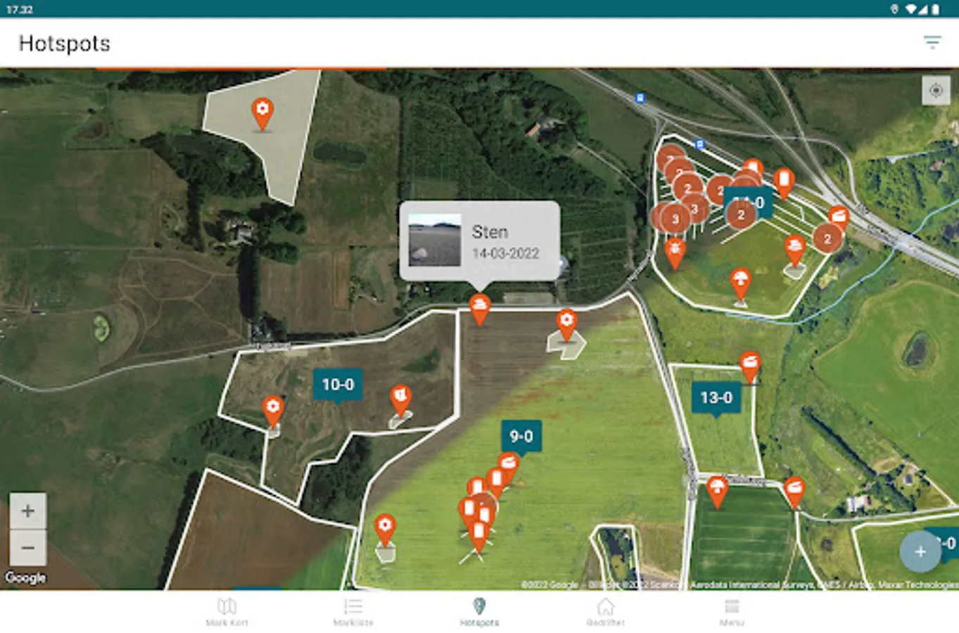 The result is that you won’t be swamped in irrelevant information. FarmTracking has the capability to create and store GPS hotspots in your fields. With the hotspot function you can create points, lines or polygons where you want to register weeds, pests, deceases, hydrants, stone or your drains.