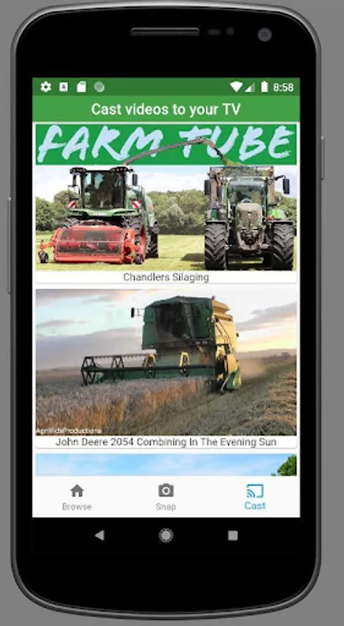 FarmTUBE gives you free access to thousands of farming videos and lets you cast those videos to your Smart TV and Chromecast