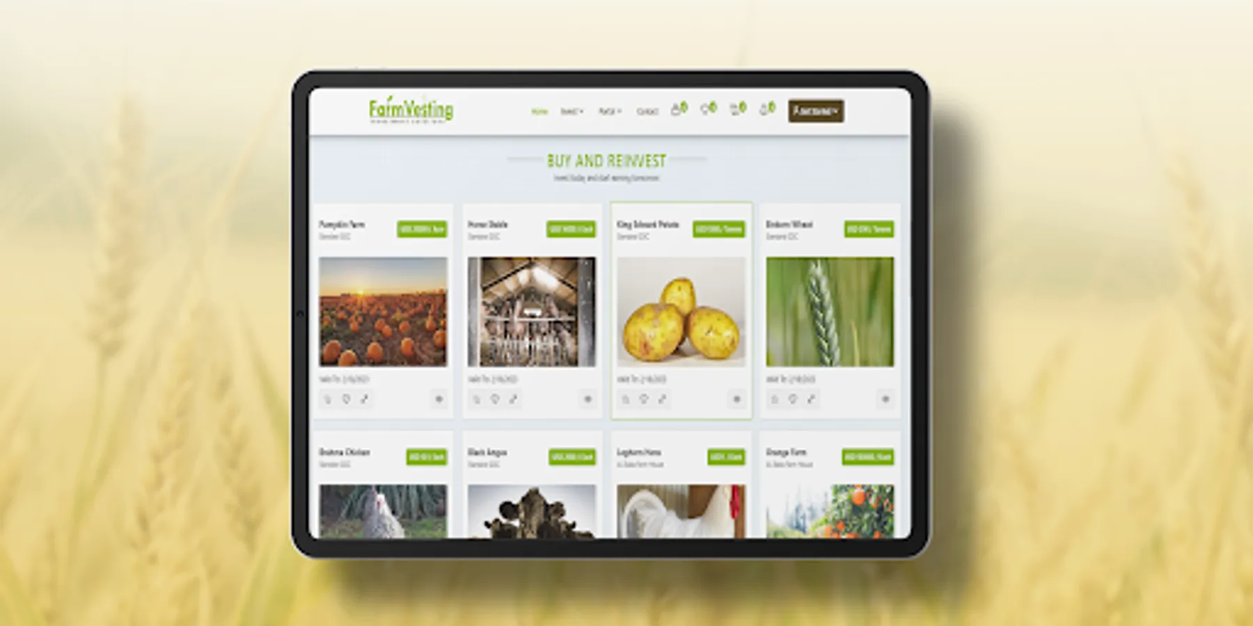 Agri Farmvesting Investment Portal. Where user can invest in LAND, ANIMAL and CROP.
