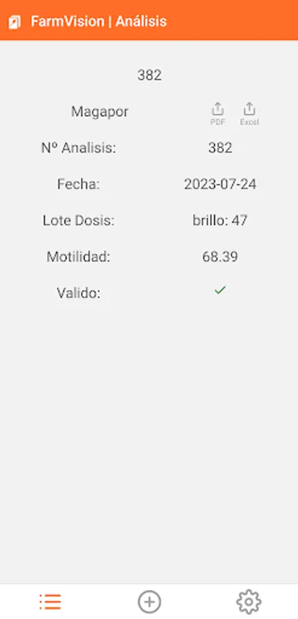 The software allows the registration of the batch of doses to be evaluated, connects with the equipment to obtain the video of the sample to be evaluated and performs the analysis in the cloud. FarmVision evaluates the motility of the sample and alerts the user whether or not the tested dose meets the farm criteria before breeding.