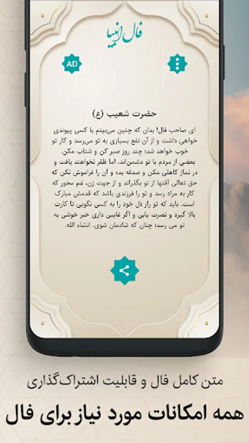 The divination of the prophets is one of the most popular ancient divinations among Iranians, which is used daily by many people to predict their work and life affairs. The divination of the divine prophets is a divination in which you will see the result of your divination according to one of the divine prophets. This program, as a complete reference in the field of divination of prophets and divine prophets, is completely at your disposal, dear user, so that you can get the answers to your questions through the divination of prophets and divine prophets. The divination of the prophets includes divination to one of the 26 divine prophets.