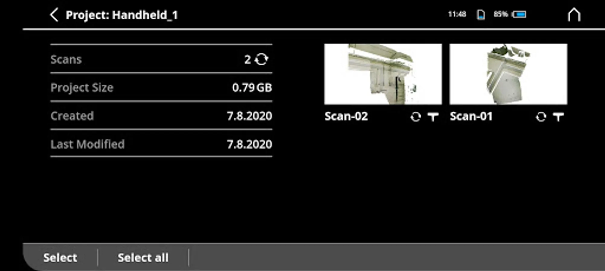 The FARO® Freestyle 2 App allows to control the FARO® Freestyle 2 3D Scanner device, the sensor that creates complete, accurate and photo-realistic 3D Data of ambients, crime scenes, incident scenes, and other environments. With this App you can measure on-the-fly, process and export colorized pointclouds.