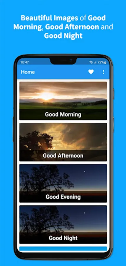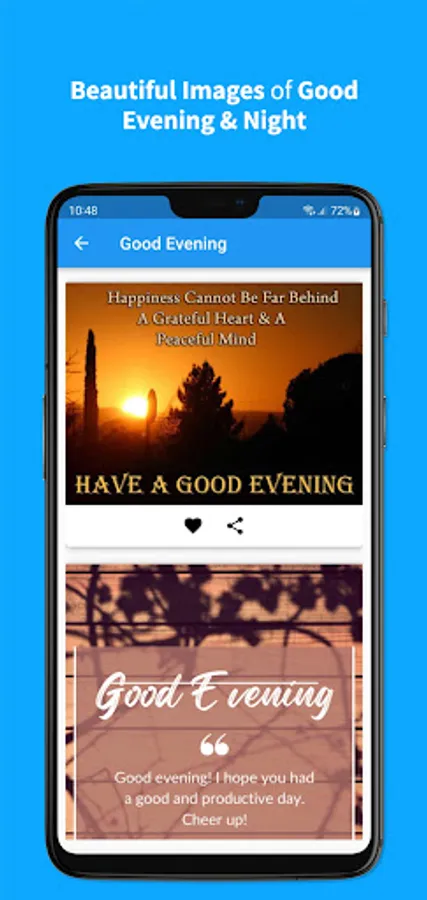 The best image app with phrases of Good Morning, Good Afternoon, Good Evening and Good Night. The app has many categories for different times. The most complete application of Good Morning, Good Afternoon, Good Evening and Good Night messages.