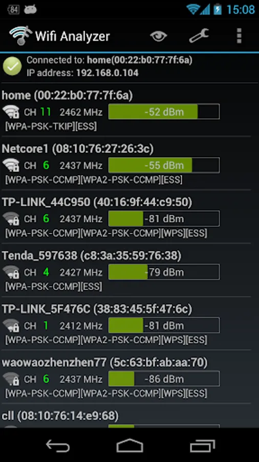 Shows the Wi-Fi channels around you. Helps you to find a less crowded channel for your wireless router.