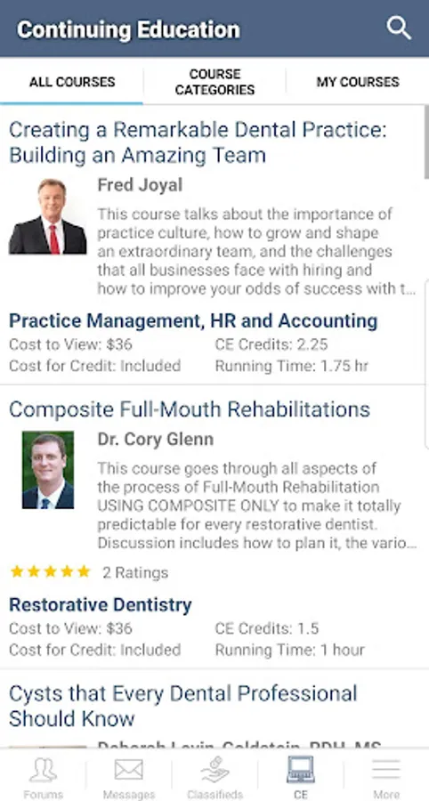 • Watch and purchase videos from our constantly expanding Continuing Education repository. Gain access to amazing content in fields such as Implant Dentistry, Cosmetic Dentistry, Endodontics, Restorative Dentisty, and more!