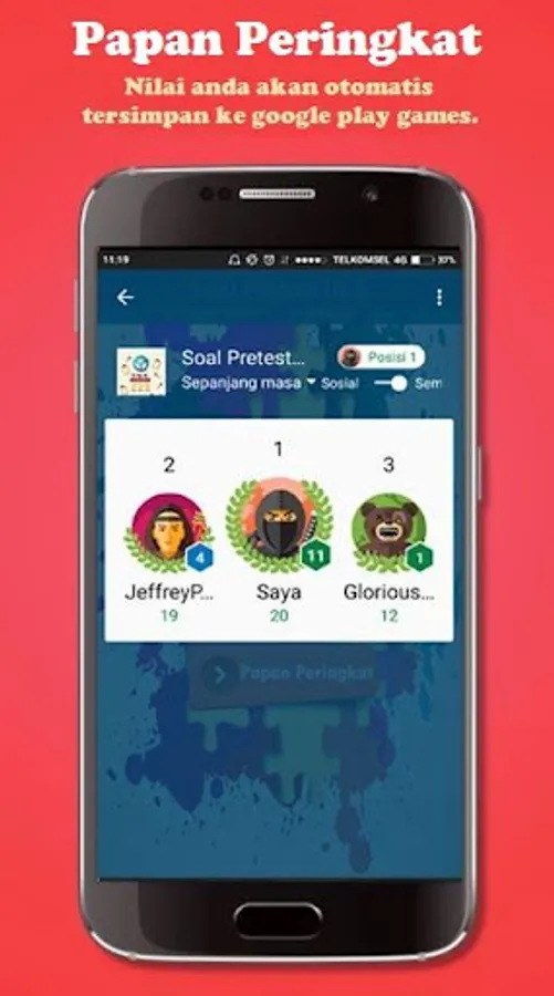 - Leaderboard is a leaderboard for all users who get the highest score to the lowest.