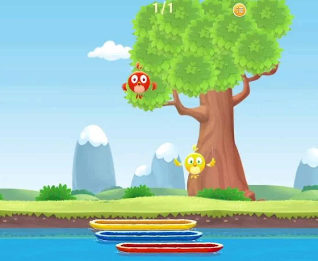 Blue birds in blue nests, red birds in red nests and yellow in yellow nests