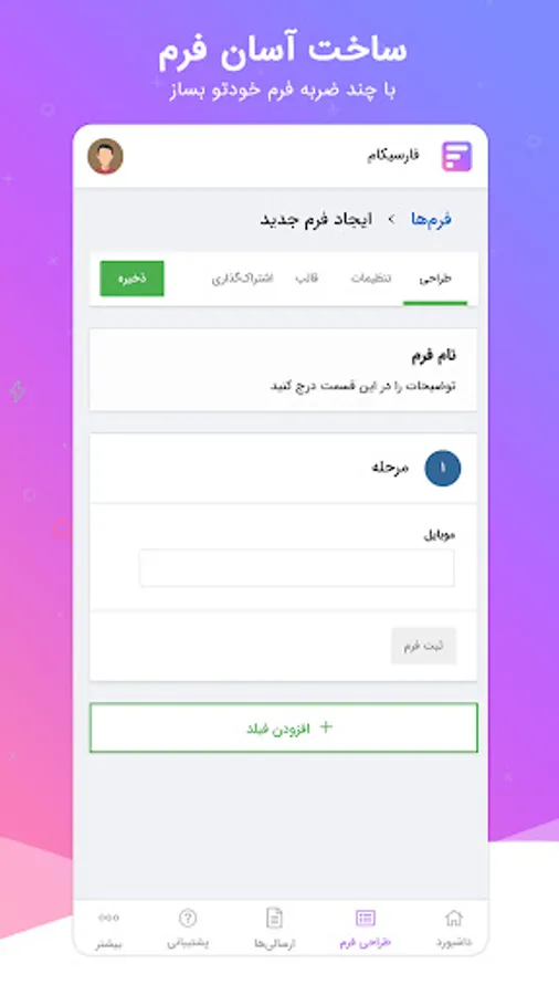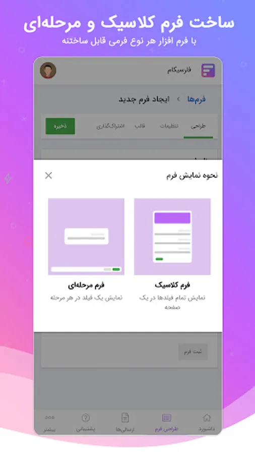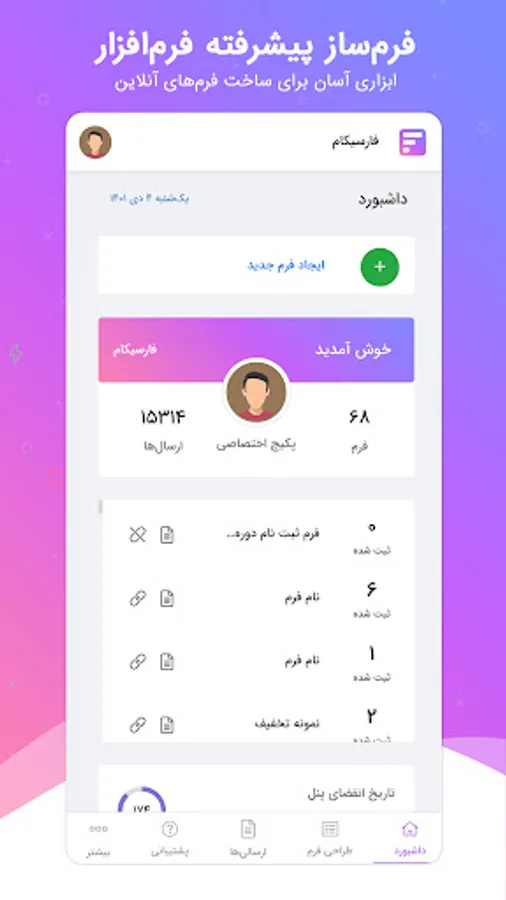 Apply time limit, limit the number of registrations and field value, limit for each user and device and set values, as well as the possibility of creating a login and registration page and two-step authentication by sending an SMS to the recipient's mobile phone.