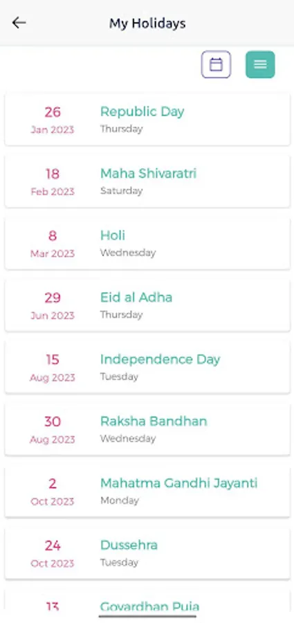 The Mobile App showcases region wise holidays for states all over India because different states observe holidays on different occasions which might not be applicable generically.