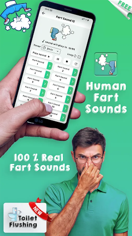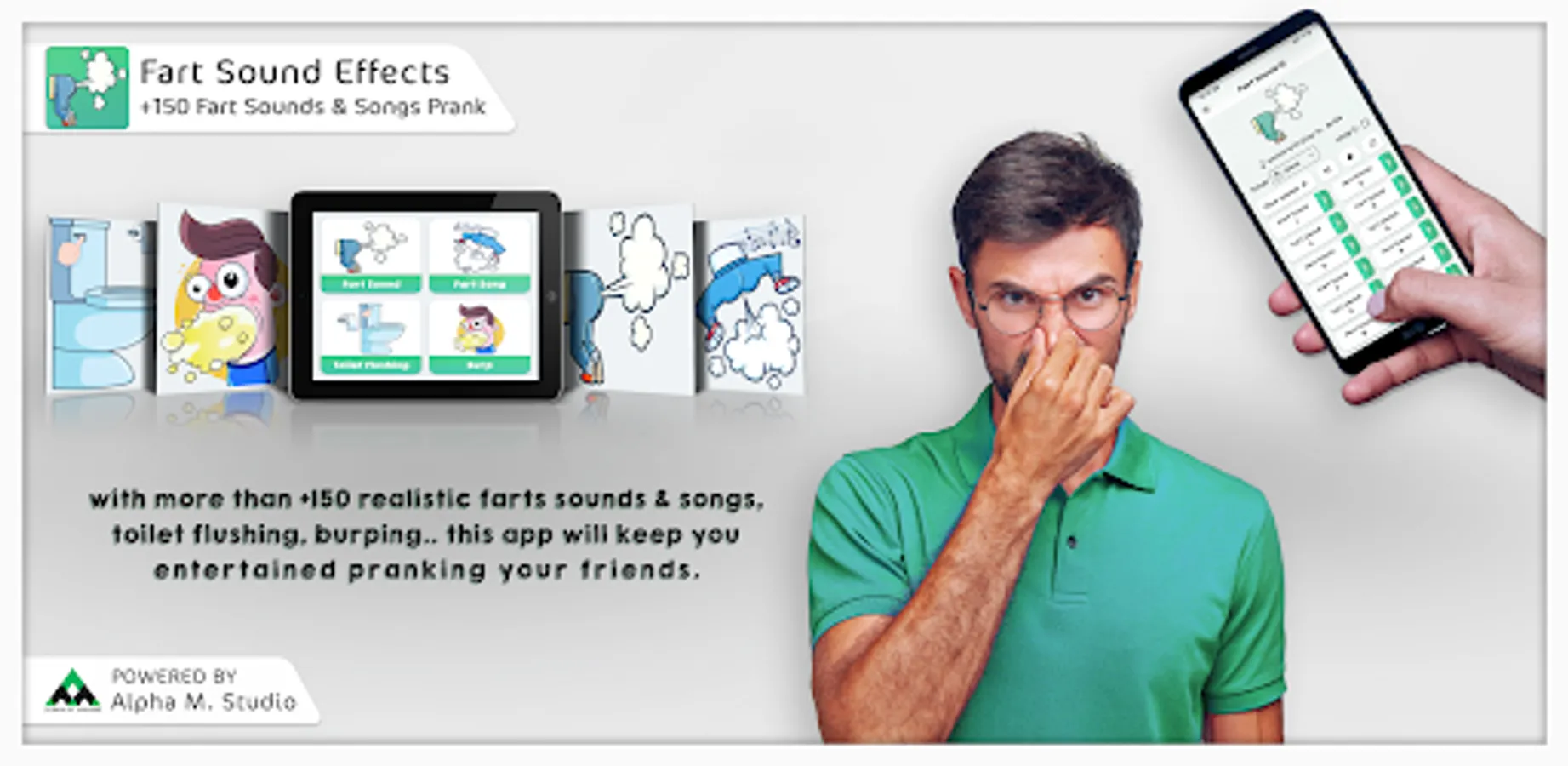 Be ready cause Funny Fart Sound Effects are here! Get cool prank sounds now! with more than +150 realistic farts sounds & songs, toilet flushing, burping.. this app will keep you entertained pranking your friends.