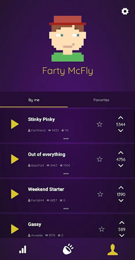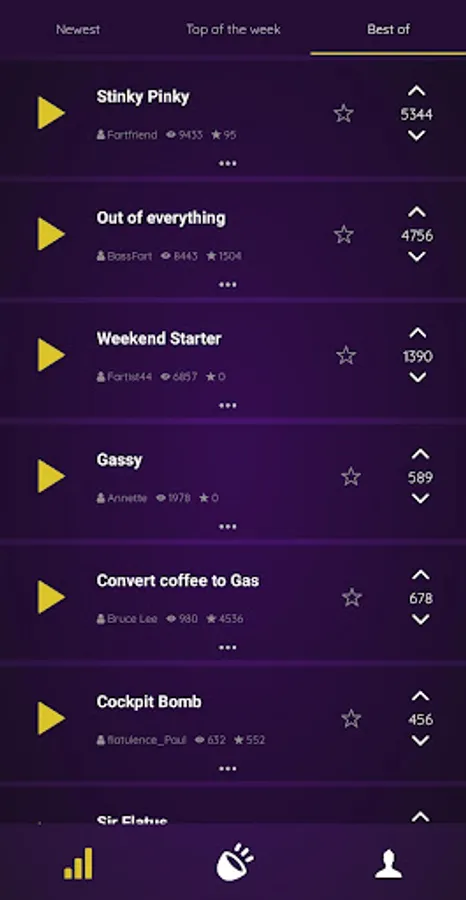 At first you download our fart app "Fart Rater" and register anonymously with an alias. After this prepare yourself for your first recording. Then press the gas mask to record your first masterpiece, provide a meaningful name to give other users a first impression. Don't forget to listen to and rate the masterpieces of other users!