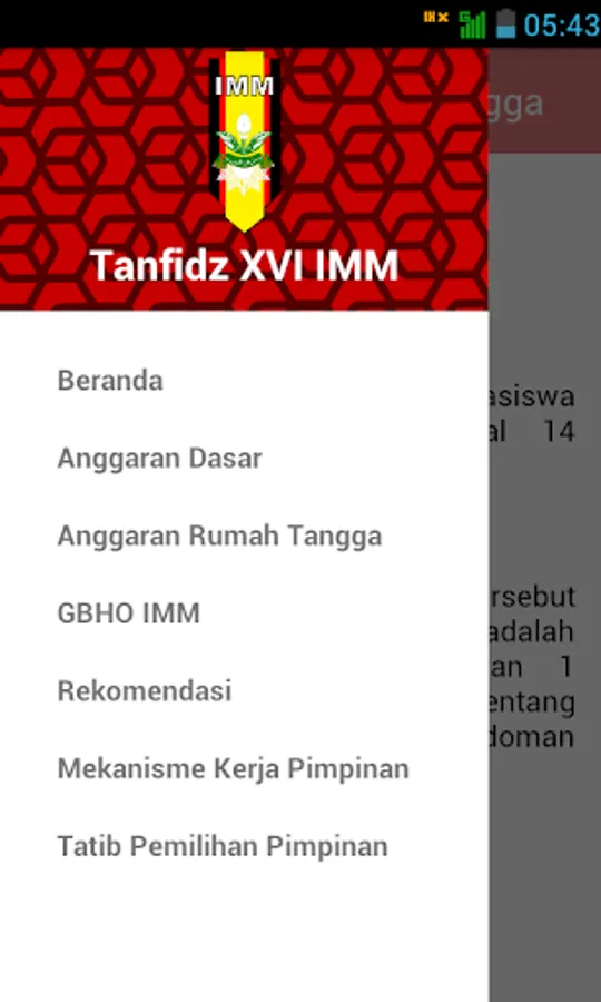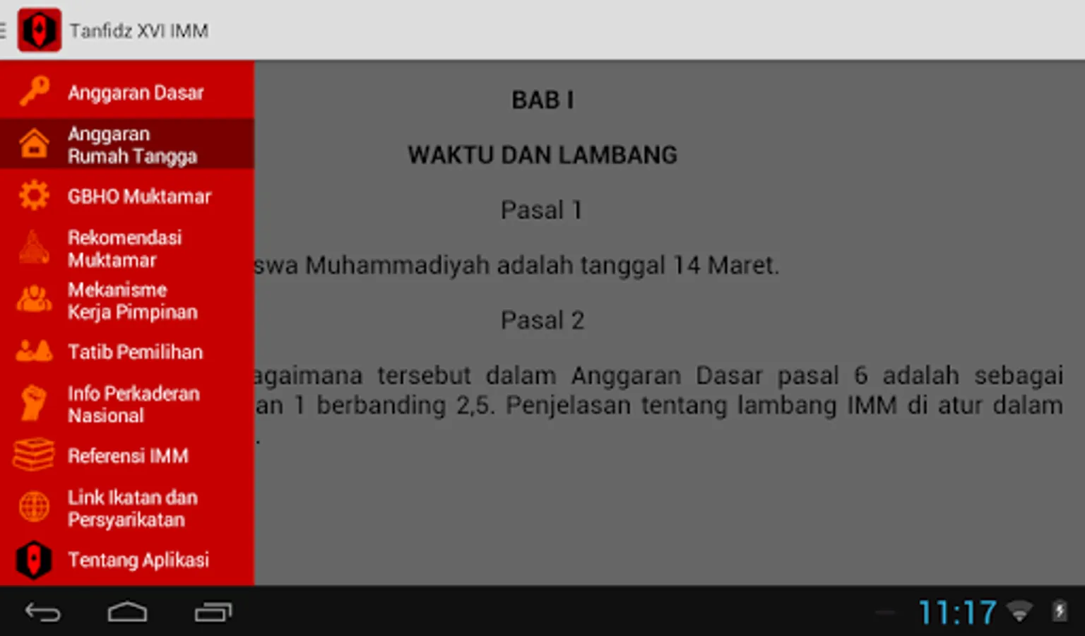 Tanfidh XVI IMM is one of digital products IMM Half a Century. The menu contained in this application are: