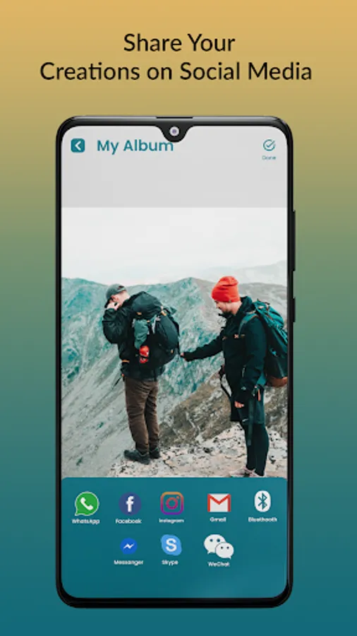 • Share by clicking on the “share option” that appears at the bottom of your Album screen