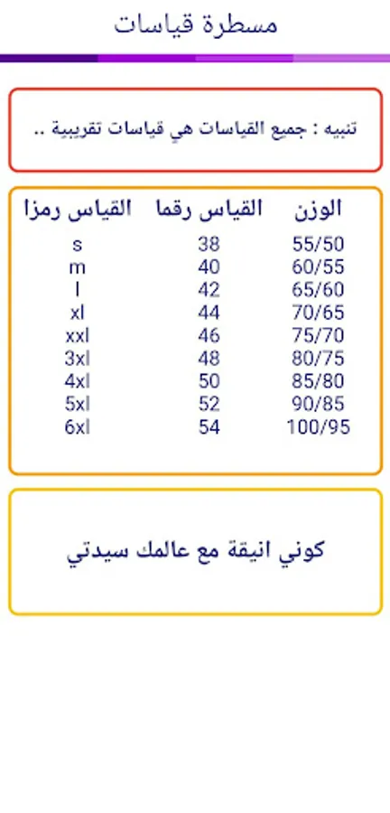 The "Your World Madam" application is your ideal choice for a unique shopping experience. It provides you with an effective ruler for clothing measurements according to weight, in addition to a ruler for colors that suit your skin. It also provides information on normal weight, making it easier for you to achieve your goals. With a single button, you can browse and purchase a wide range of clothing from social media platforms such as Instagram and Facebook. And don't forget the calorie counter interface. Make "Your World Madam" your companion for a unique and distinctive shopping experience.