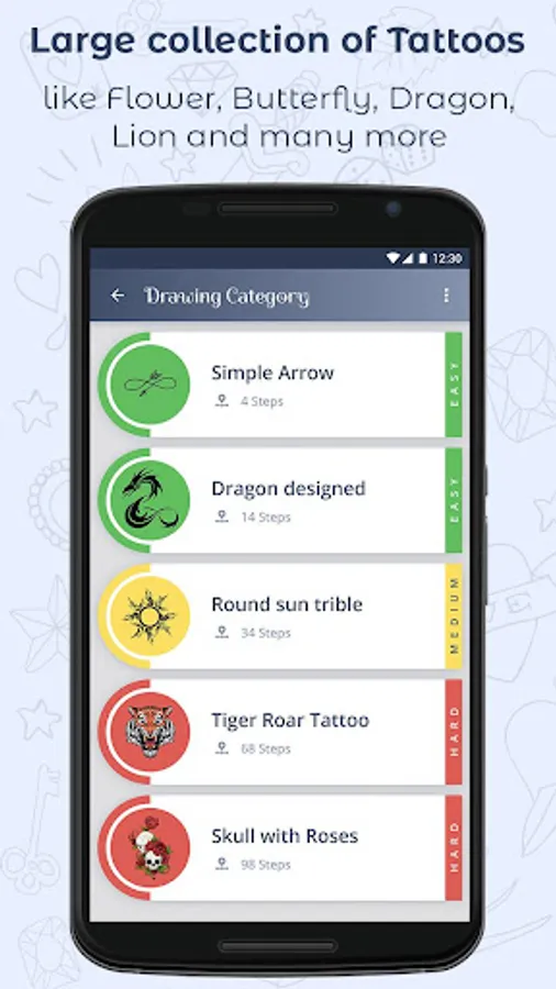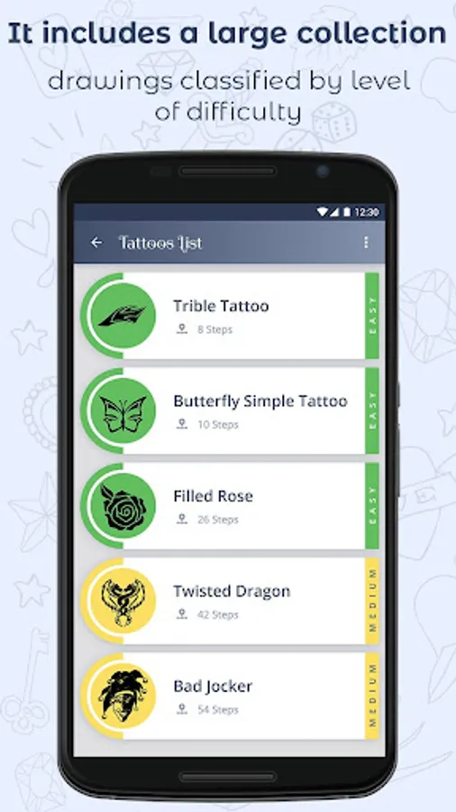 If you are a beginner, we offer Tattoo a step by step tutorial application that you can download on your smartphone.