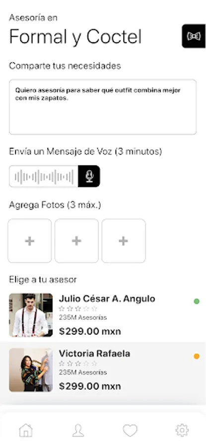 FashionAid is a platform that connects clients with image advisors, is the consultancy of experts, with the purpose of offering quick advisories on their way of dressing, maximaze their wardrobe investment, find the best combination of their clothes, harmonize their wardrobes, advising them on purchases that are necessary to have the desired image, and see themselves as they have always wanted.