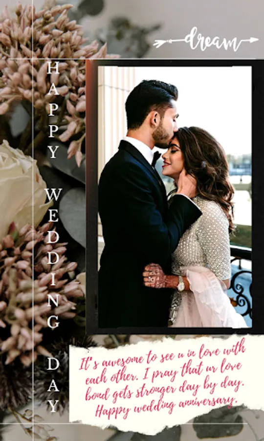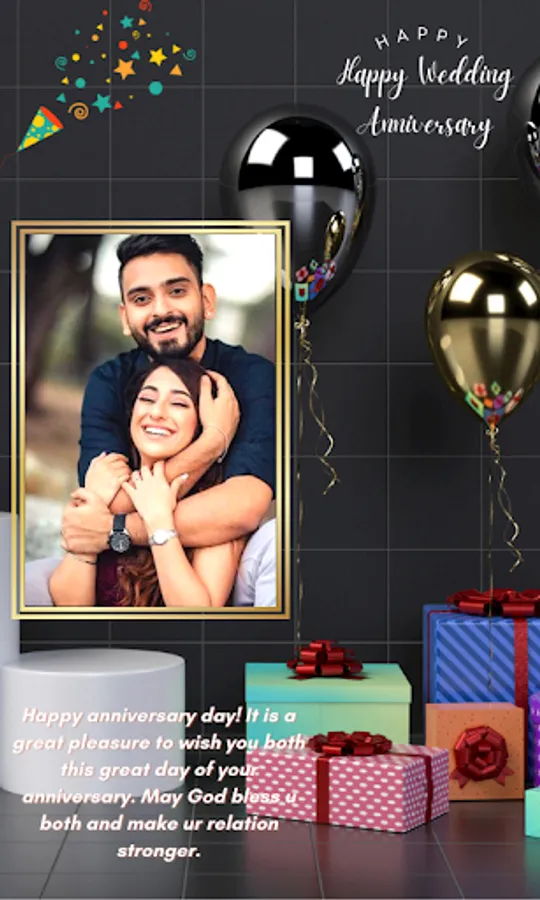 Create a beautiful anniversary photo wishes with this anniversary photo frames. It's easy now to make someones wedding more memorable with these wedding anniversary photo frames. This app makes your celebration more sweet and memorable. You will find various edited frames with love and care.