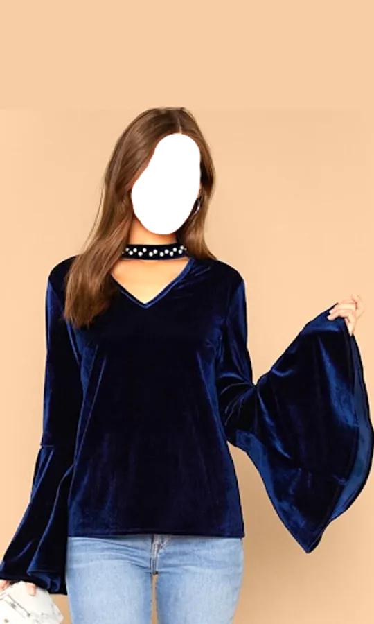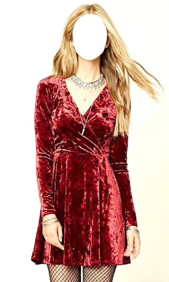 So in the latest generation we can see velvet outfits for women. This is a photo suit app, in which you can change faces and check your look in each dress.