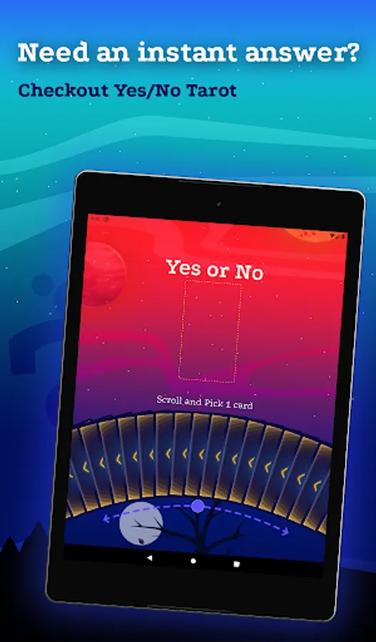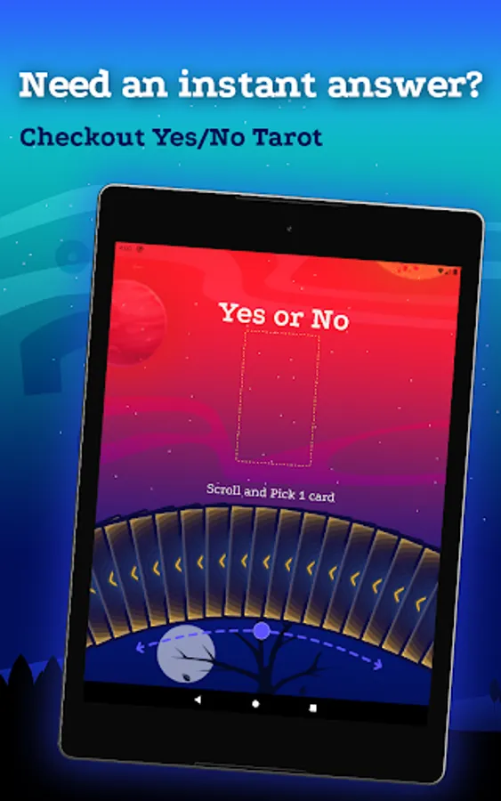 Need an instant answer for a decision? You can use our appโs Yes No tarot to receive your tarot judgment for any of your questions. No matter the issue and question you are trying to solve or decide, the yes no tarot card section can provide you with the best yes or no tarot answers with a simple tap.