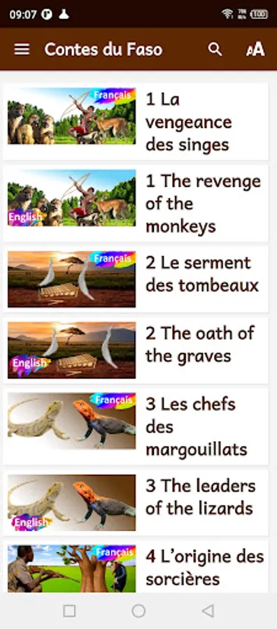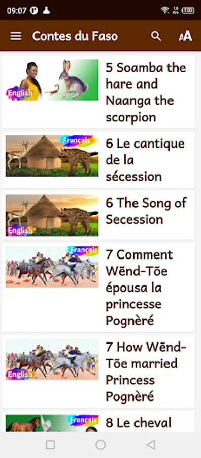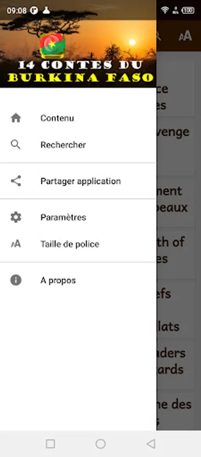 This application presents 14 traditional tales from Burkina Faso in French and translated into English.