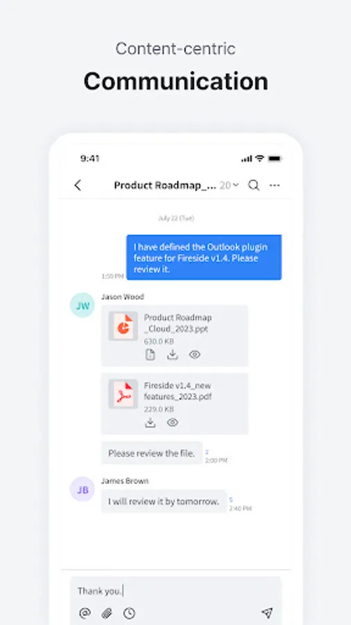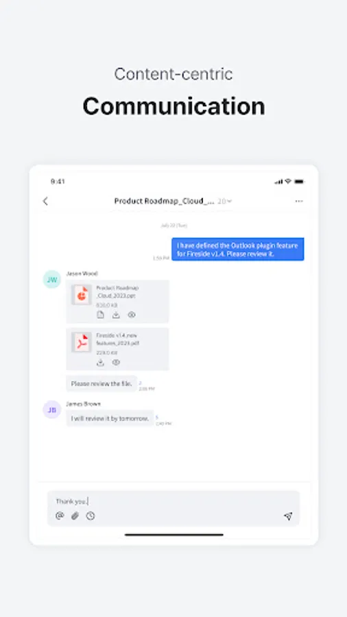※ Fasoo Fireside is an enterprise chat application and is restricted to internal users only.