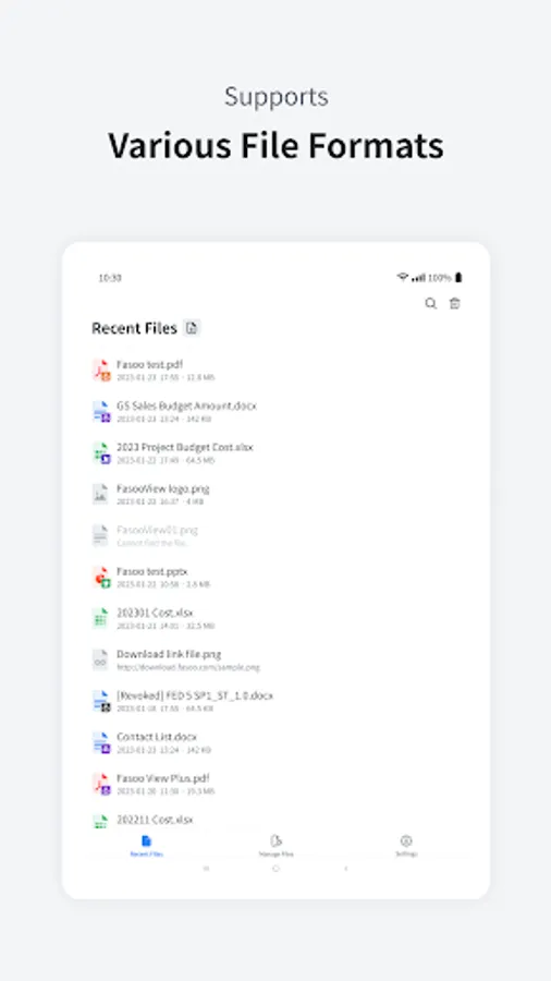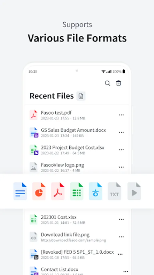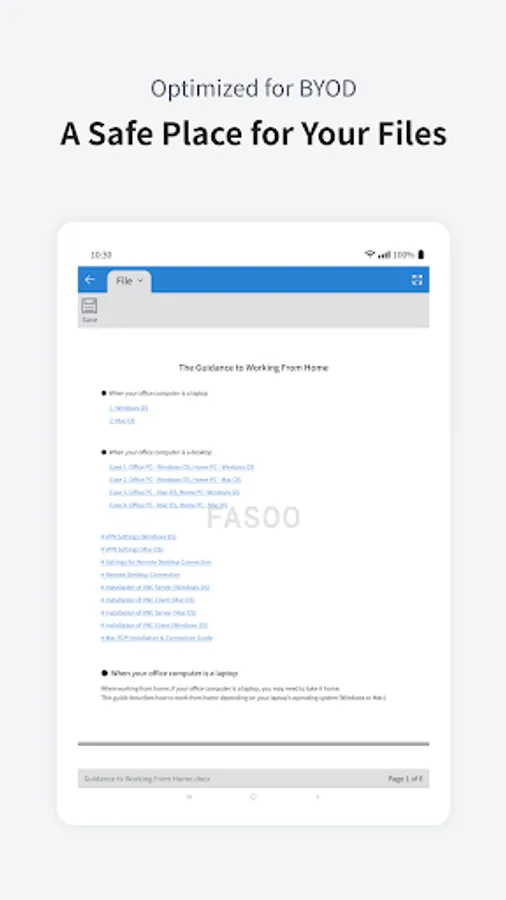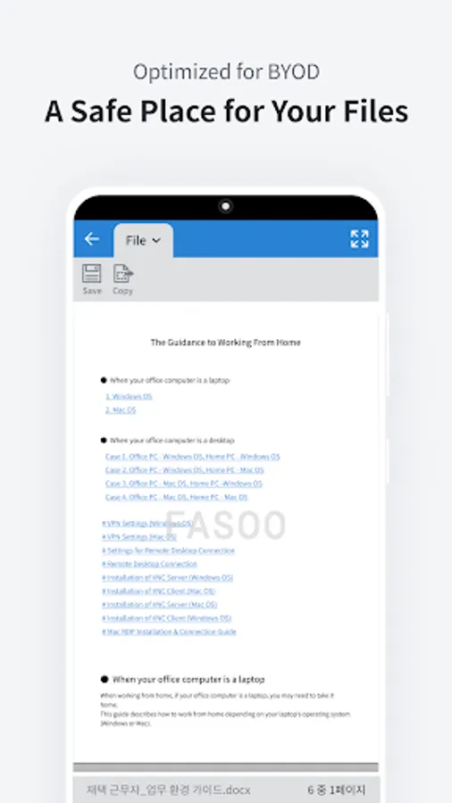 *CAUTION: Fasoo View is allowed to be operated/used by users who install a certificate through FED-M prior to viewing files on their mobile device. Both encrypted documents and normal documents may not be accessed by unauthorized users. Fasoo View is not intended for personal users.