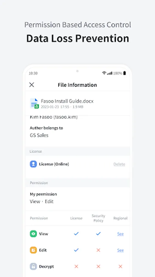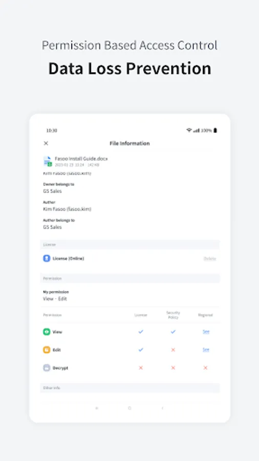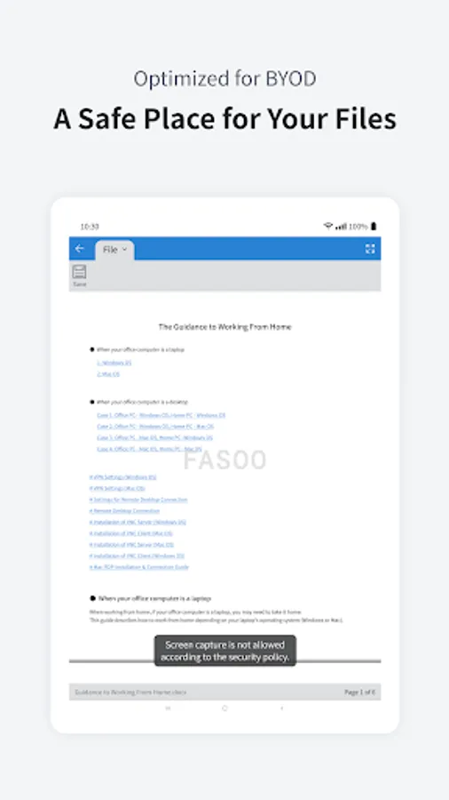 Fasoo View Plus allows users to safely and securely view and edit their documents as they do on their PC through their mobile device.