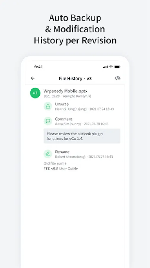 - Lookup version history of each file, and access when required
