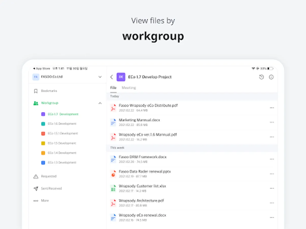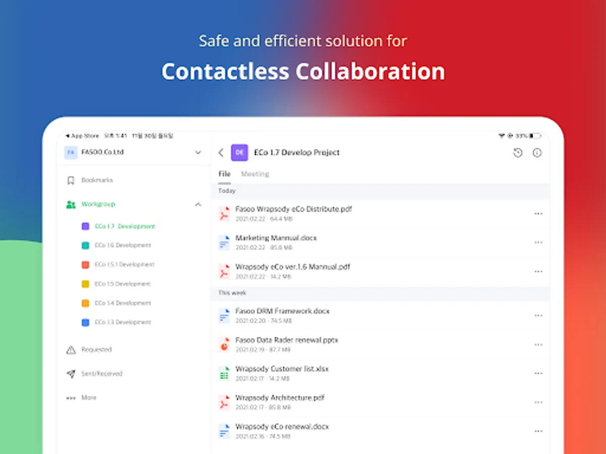 Wrapsody eCo is a collaboration platform provided by Fasoo. Over 3 million users around the world already manage their digital assets safely and efficiently with Fasoo's document security solutions.