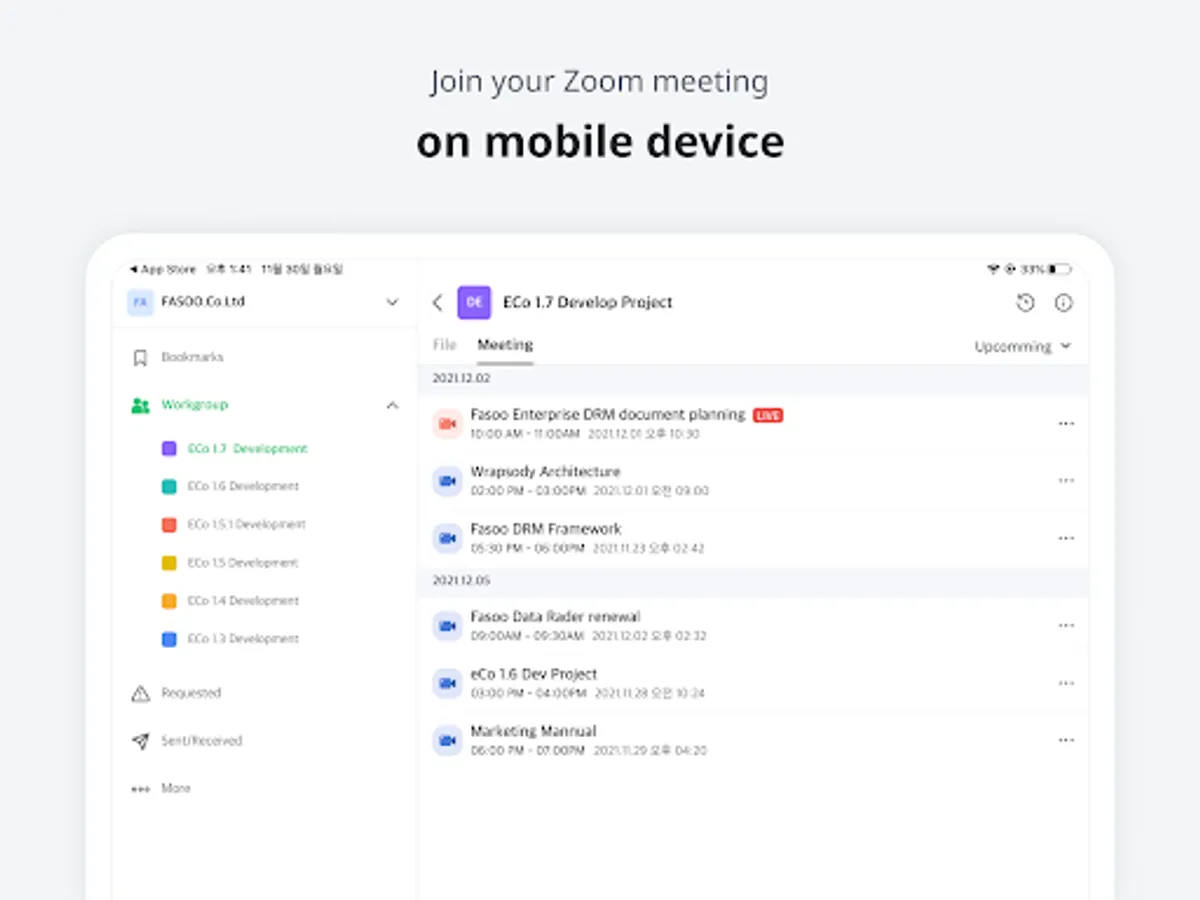 You can host a video conference for your group, add a memo, and request to view the file for rapid collaboration.