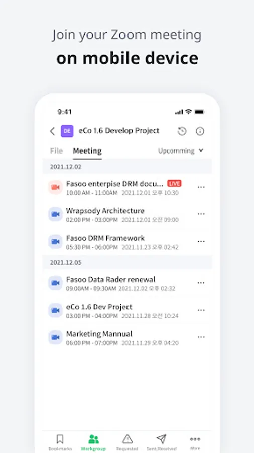 You can host a video conference for your group, add a memo, and request to view the file for rapid collaboration.