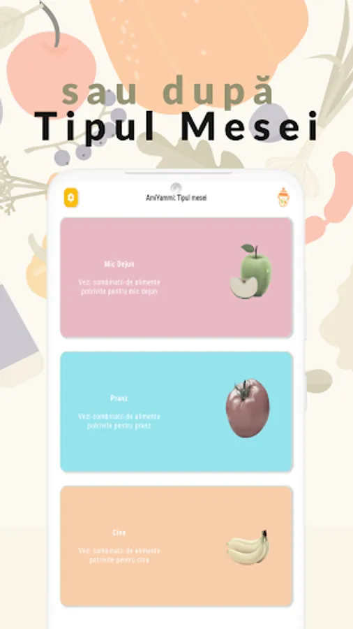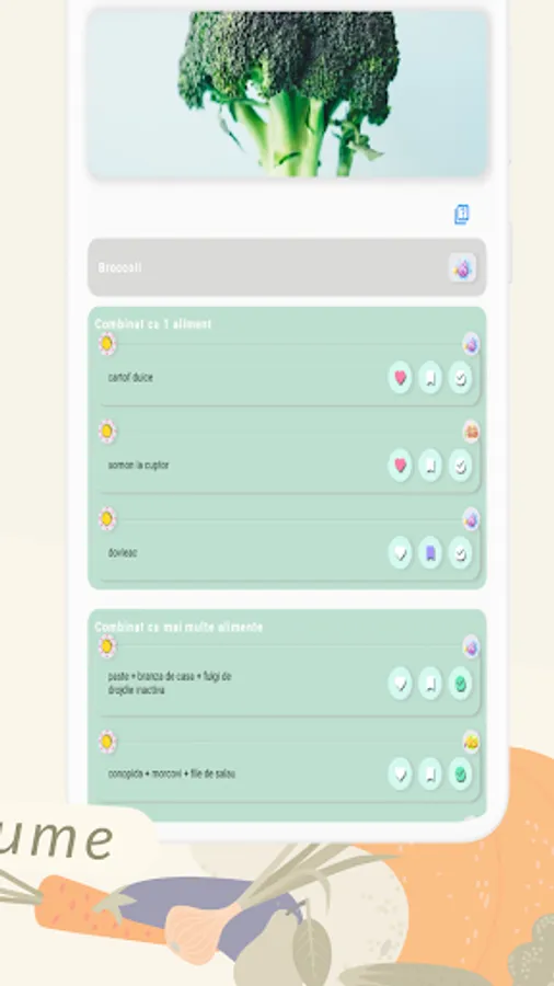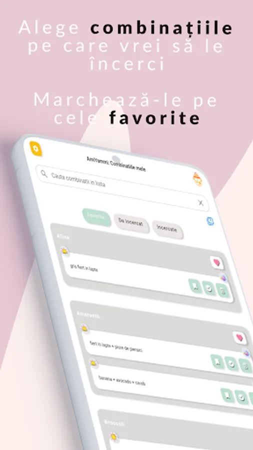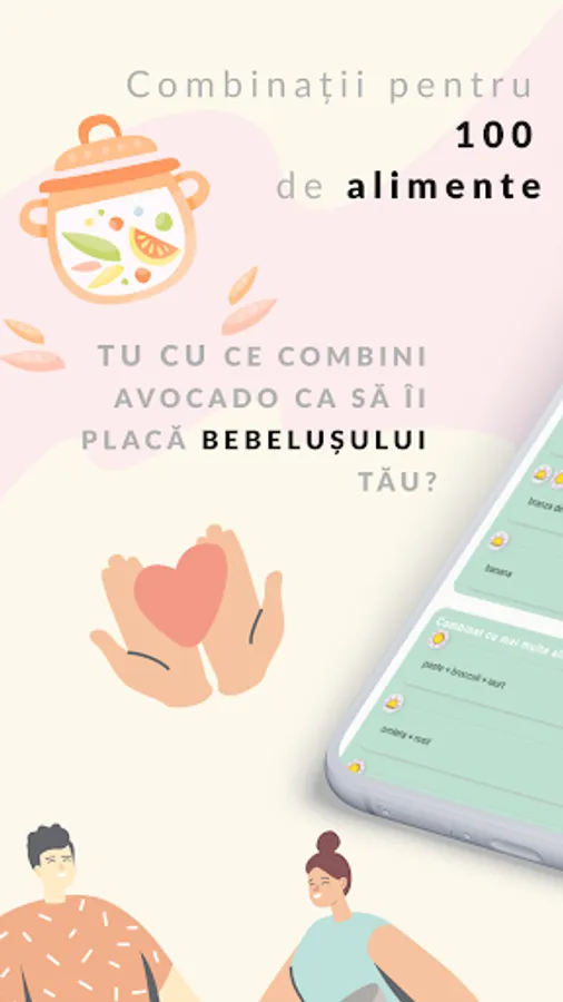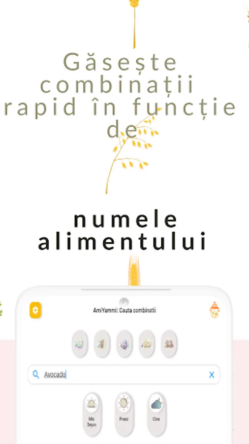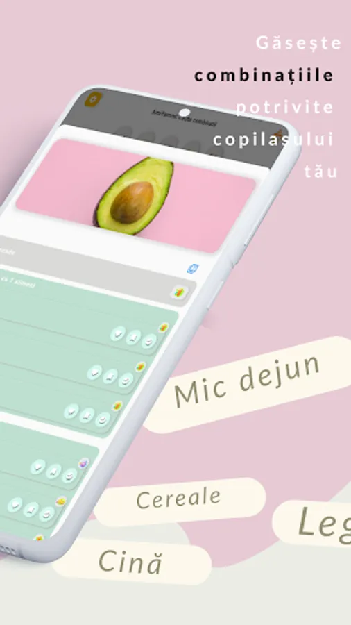 We offer examples of combinations for 100 foods. The combinations are grouped by food name, age of the child, type of meal (breakfast / lunch / dinner) and food categories (vegetables / fruits / cereals / proteins / miscellaneous).