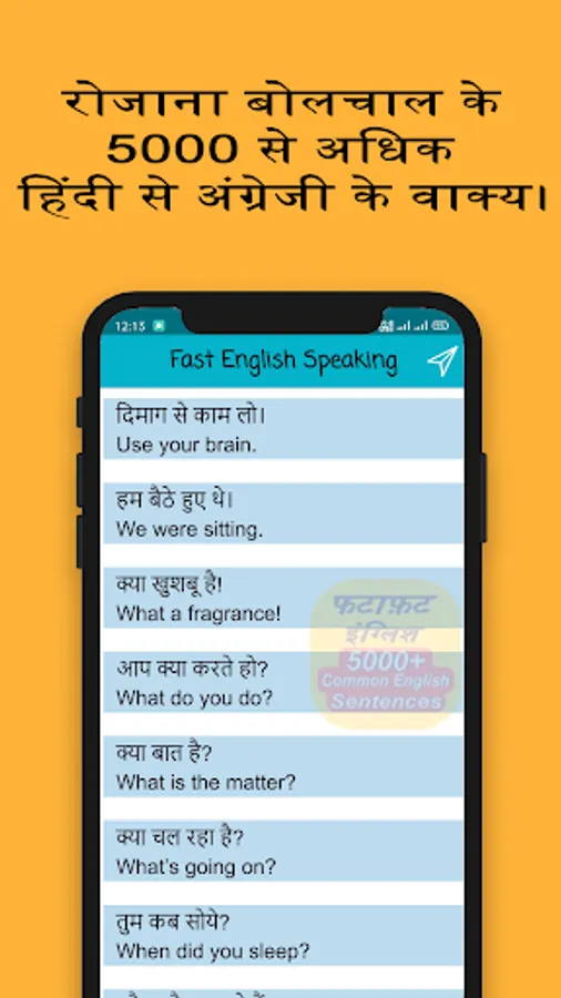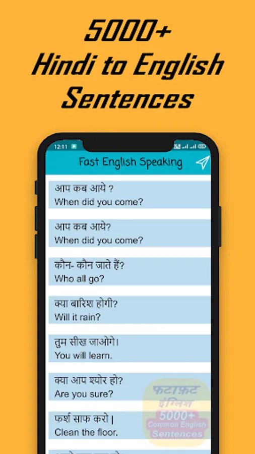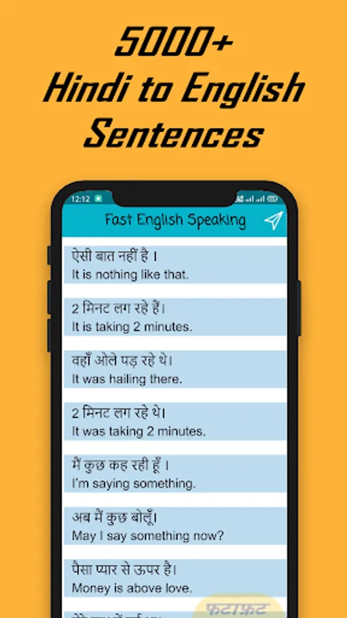 Fast English Speaking App is designed for students who want to learn English Speaking in a short span of time. For students, we collected 5000+ most commonly used English sentences and translated them into Hindi. Students can quickly learn English speaking by practicing daily Hindi to English translations.
